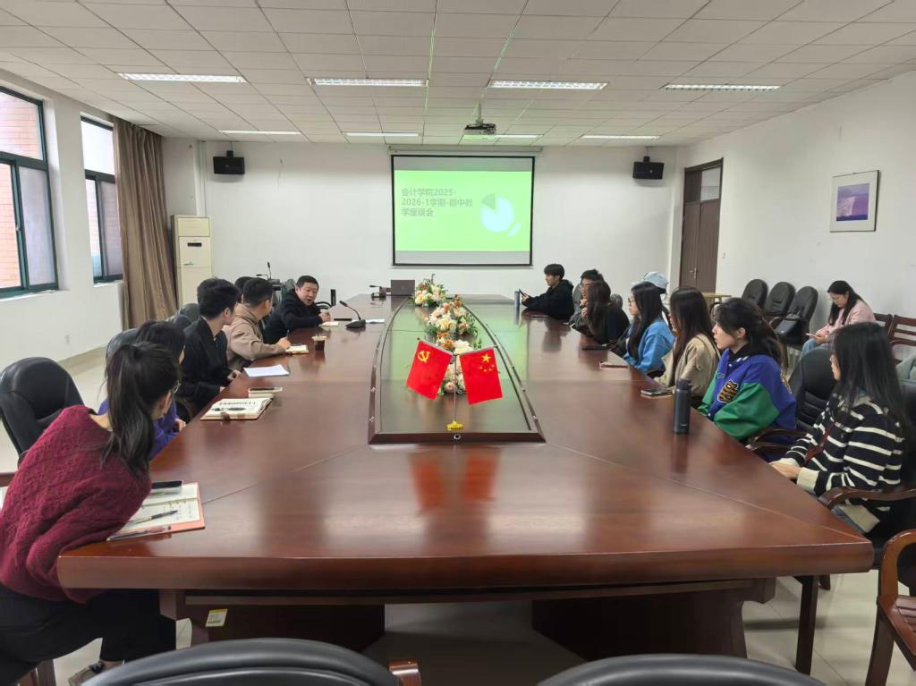 11月11日,会计学院于四号教学楼502会议室举办了期中教学座谈会暨青年教师座谈会。本次会议的目的在于规范教学秩序,强化课堂管理,提高课堂教学成效,培育“自觉、自省、自律、自查、自纠”的“五自”教学质量文化,进而推动教师教学质量与学生学习质量的协同提升。会计学院副院长许诺老师、教学督导委杨萱老师、各系的青年教师代表、各年级带班辅导员以及各班学委均出席了此次会议。